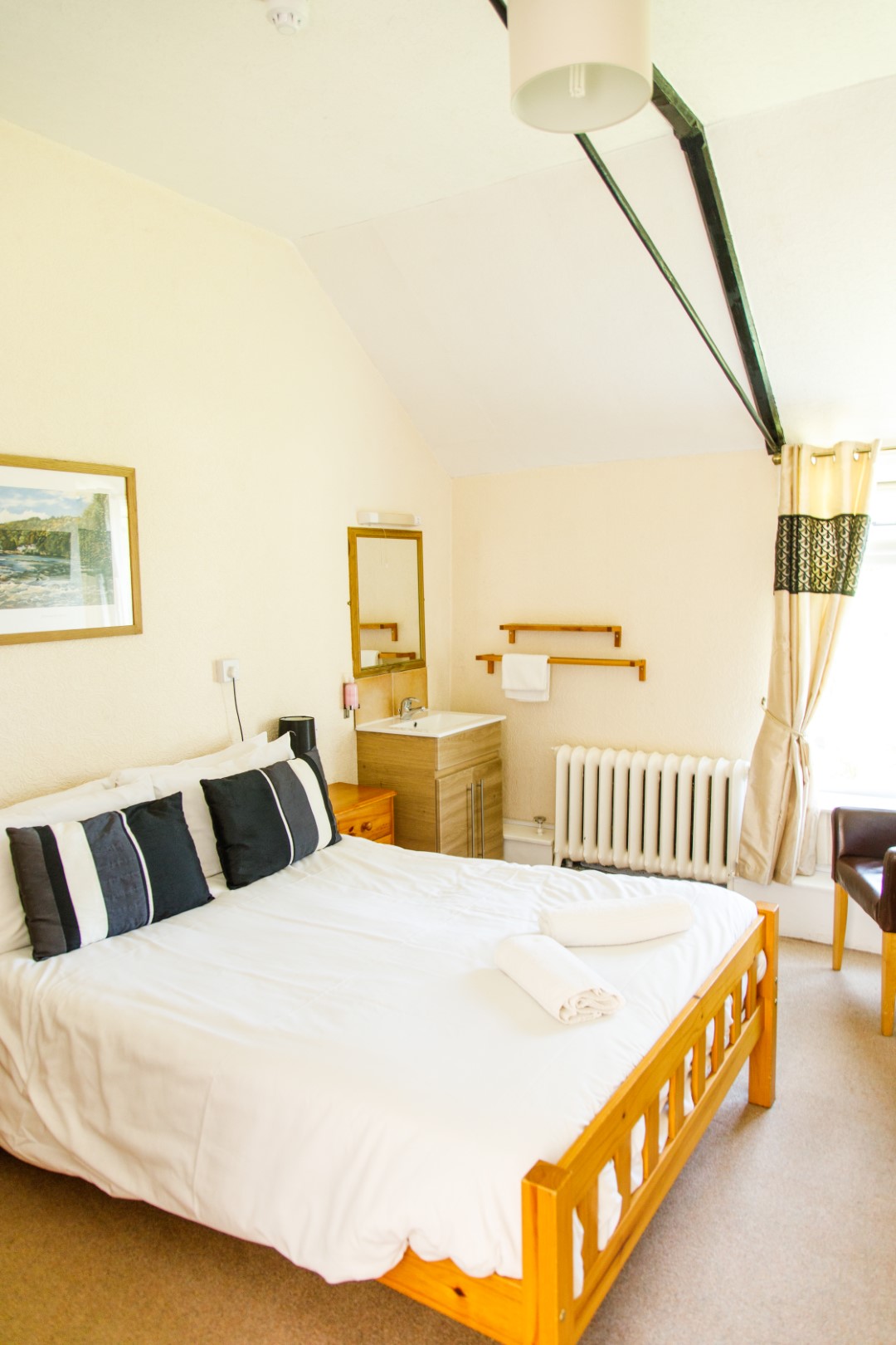 This room has a small en-suite shower and toilet with a separate wash basin in the bedroom